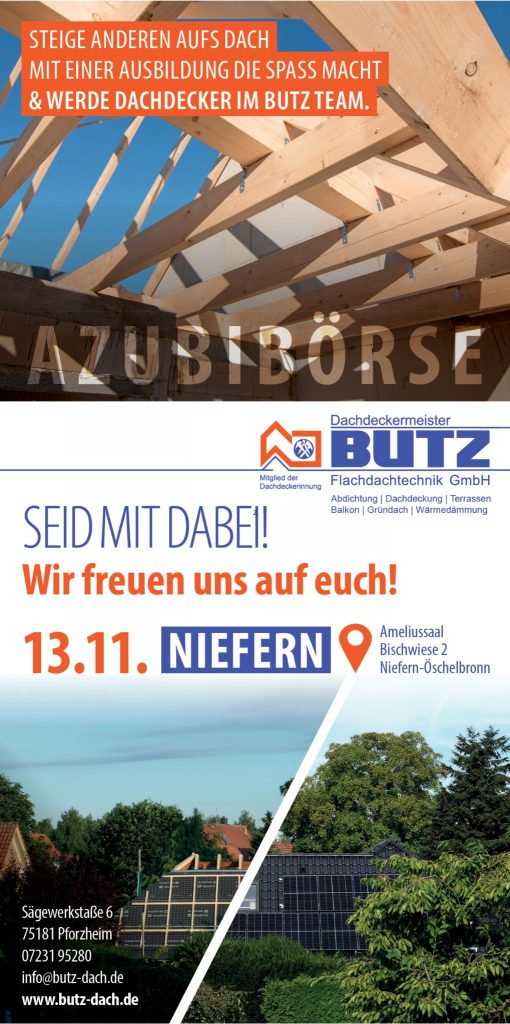 Unser Unternehmen Butz Flachdachtechnik GmbH hat sich auf den Bau von Flachdächern spezialisiert. Darüber hinaus decken wir die komplette Bandbreite rund ums Dach ab: ob Terrasse, Balkonabdichtungen, Gründächer, Flüssigabdichtungen oder Photovoltaikanlagen sowie der Einbau von Dachfenstern oder Lichtkuppeln um nur einiges zu nennen.