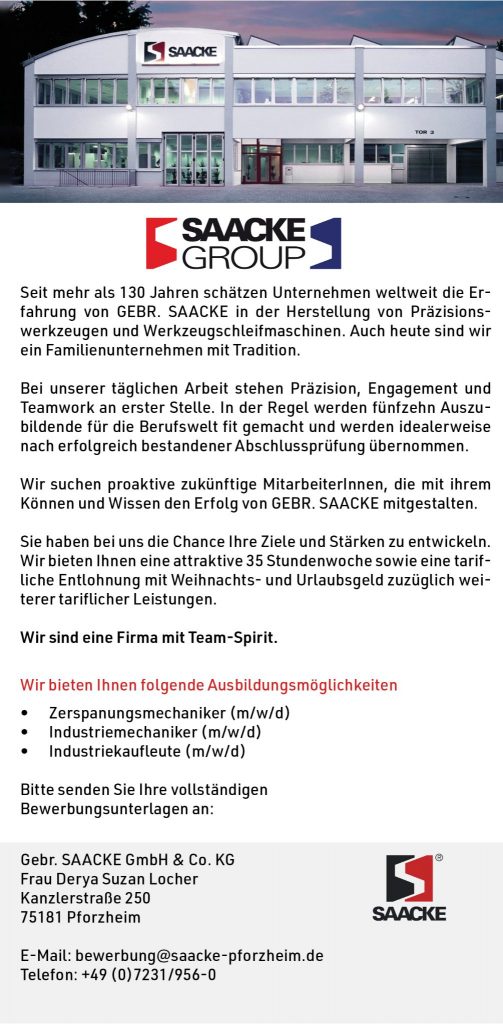 Sitz der SAACKE-Gruppe ist Pforzheim mit rund 200 Mitarbeitern. Der international ausgerichtete Vertrieb wird durch eigene Niederlassungen in China, USA und Indien unterstützt. Produziert werden Verzahnungswerkzeuge, Formfräser sowie Hightech-Schleifzentren, die weltweit bei führenden Werkzeugherstellern und Automobilzulieferern im Einsatz sind.
